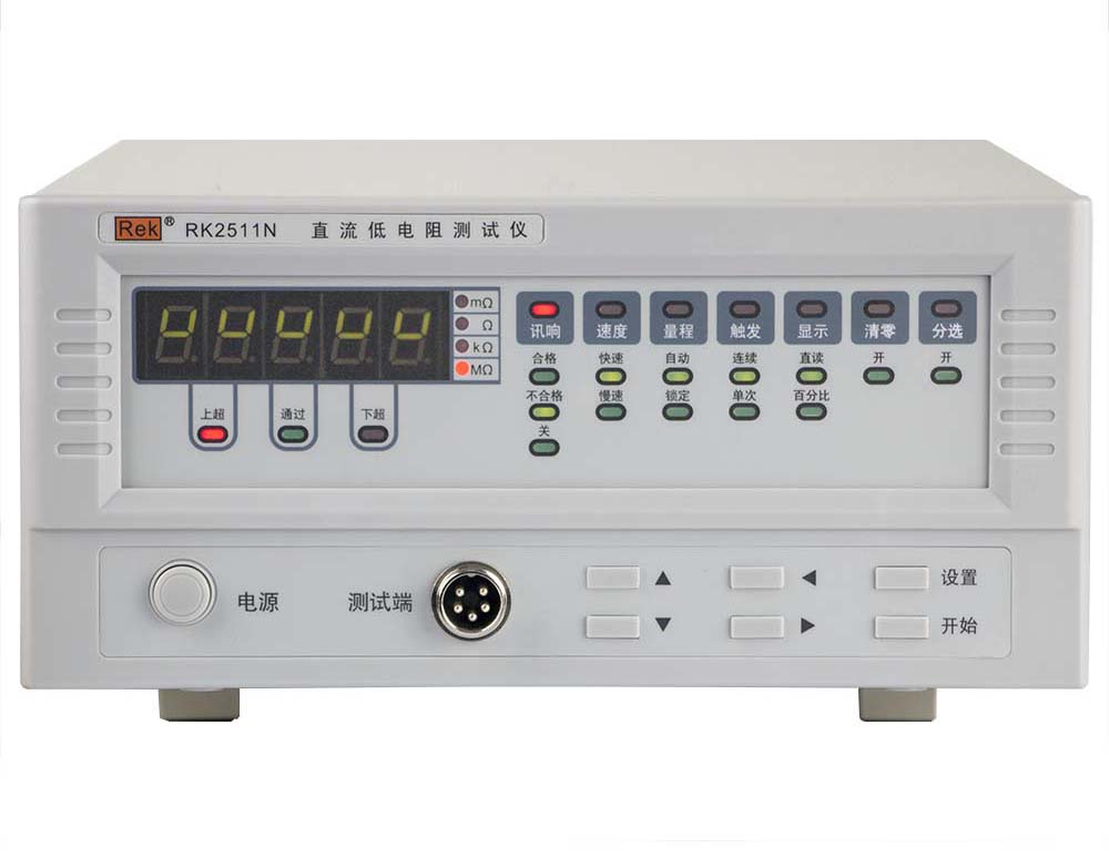 RK2511N直流低电阻测试仪是一款对变压器、电机、开关、继电器、接插件等各类直流电阻进行测试的仪器。其基本测试精度最高可达0.05%,并具有较高的测量速度。
