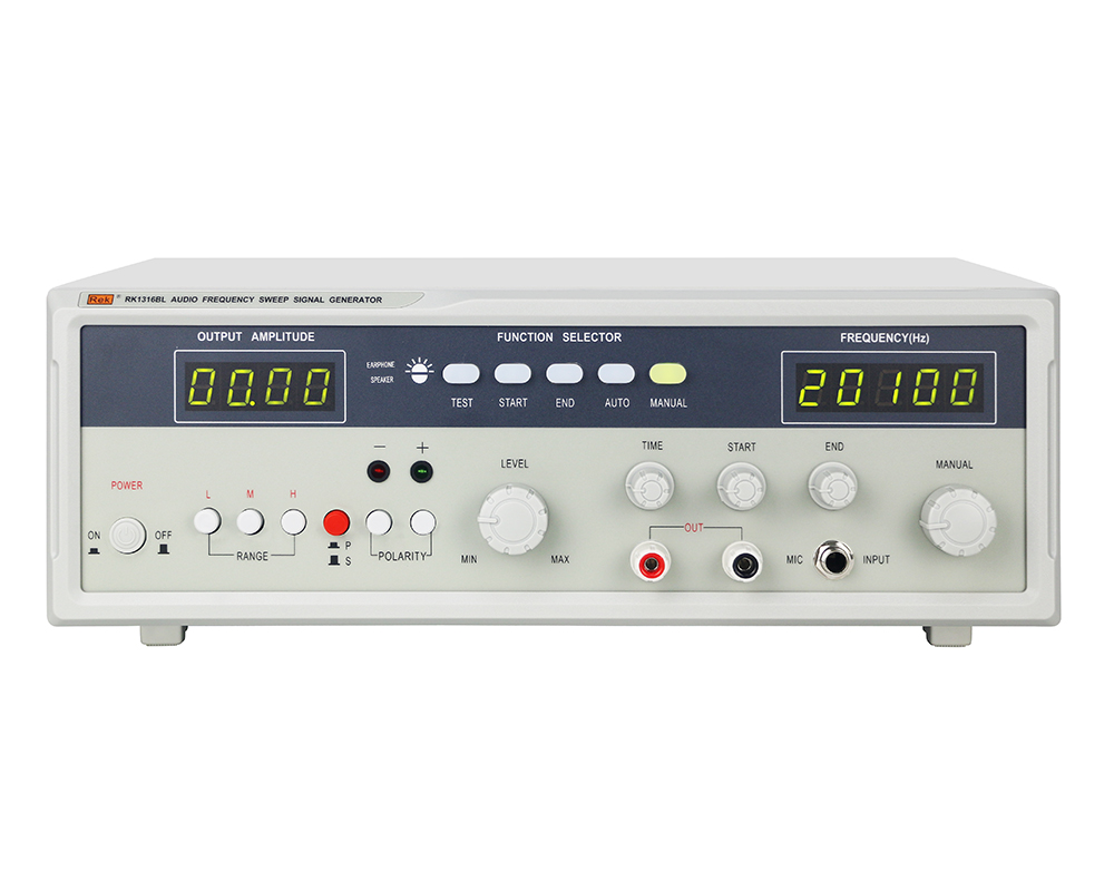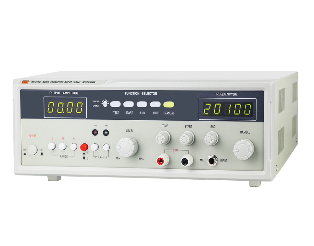 RK1316系列音频信号发生器采用先进的压控振荡电路,产生稳定、低失真的正弦波信号。输出幅度、频率均采用数码显示、扫频范围可达1:1000以上,扫频的起点和终点可任意设置,