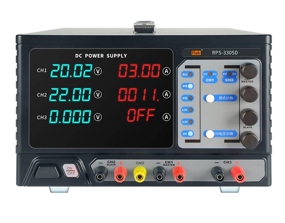本系列产品有两路可调输出、一路固定输出2.5V/3.3V/5V; 采用纯铜环型变压器,效率高,发热小。无须外接连线即可实现主通道CH1、CH2间的串并联,简化连线,使测试更简便。四位数码屏显示,
